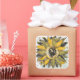 Sticker Carré Sunflower Yellow Green Black Watercolor Style Art