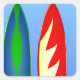 avec un design cool de deux planches de surf aux couleurs vives, installées sur une plage. Ces planches de surf sont de style rétro classique et rappellent une journée ensoleillée d'été à la plage. Un grand design pour les amateurs de plage et de surf.