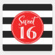 Sticker Carré Sweet 16 Anniversaire Rouge Noir Blanc