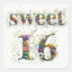 Sticker Carré Sweet 16 Joyeux Anniversaire Fleur sauvage Texte