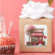 Accent your valentine crafts of stationery with this sticker printed with a quirky little shop scene filled with lots of cute little hearts, balloons and flowers details. Watercolor style illustration has an abstract pastel background. Your choice of 2 sizes in several shapes.
