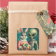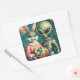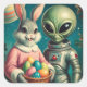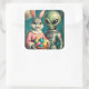 Sticker Carré Tableau Vintage Alien et Bunny de Pâques Kitsch
