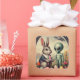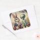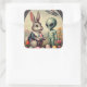 Sticker Carré Tableau Vintage Alien et Bunny de Pâques Kitsch