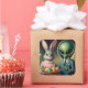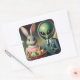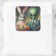 Sticker Carré Tableau Vintage Alien et Bunny de Pâques Kitsch