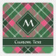 Sticker Carré Tartan vert et rose
