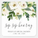 Autocollants de faveur de douche de mariage floraux avec une bordure supérieure comportant des roses blanches et de la verdure peintes à la main à l'aquarelle avec le message "Tchin Tchin Hourra" dans un script manuscrit charmant et votre nom, le titre de l'événement et la date ci-dessous. Ces autocollants élégants sont parfaits pour une célébration en été et sont un excellent moyen d'ajouter une touche personnelle à vos faveurs.