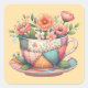 Sticker Carré Teacup Patchwork avec Fleurs Whimsical