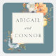 Éléments : florales audacieuses sur fond sarcelle. Vos noms et détails sont encadrés dans un ton crème classique. Couleurs : sarcelle, vert, marine, crème, terre cuite, orange, or, bleu poussiéreux. Thèmes : neutres frais, classique, contemporain, boho, bohémien, botanique, jardin. Collection : Collection de mariage floral boho élégant sarcelle terracotta marine. Type de produit : Autocollant de noms
