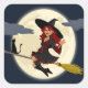 HALLOWEEN WITCH VOL SUR BROOMSTICK AVEC CHAT ET PLEINE LUNE