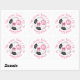 Ces stickers carrés de 3 pouces de soccer pour filles mignonnes ont la phrase typographique "Le terrain de football est mon endroit heureux" et deux contours en rose encerclant une balle de football multicolore avec des panneaux roses, noirs et blancs - customisez avec le nom de l'athlète, monogramme et numéro de maillot - par katz_d_zynes