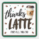 Sticker Carré Thanks a Latte Teacher Appreciation Gift