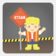 Un petit garçon constructeur mignon en équipement de construction comprenant un casque de sécurité, un gilet orange et des bottes jaunes. Il porte un panneau orange que vous pouvez personnaliser avec le nom de l'enfant. Les garçons qui aiment les véhicules de construction, les thèmes et les jouets adoreront cela !