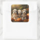 Sticker Carré Tibétain Terrier Chiot Automne Citrouille délice