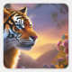 Sticker Carré Tigre bleu et fleurs roses