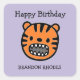 Tigre brun mignon visage violet. Ajoutez votre nom sur ce joli design arrière - plan violet.