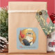 Autocollant carré inspiré d'une belle photo de Noël de l'artiste suédois Jenny Nyström (1854-1946). La photo ronde montre un brownie de Noël, une tomte, avec un casquette conique rouge et une longue barbe, qui porte une petite fille dans ses bras. La fille est habillée comme Lucia, elle porte une robe blanche et une cime de bougie éclairée. Lucie joue un rôle important, surtout dans les fêtes de Noël scandinaves, en apportant de la lumière dans les heures sombres de l'hiver.