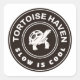 Illustration numérique d'une tortue dans un logo circulaire avec la légende Tortoise Haven Slow est Cool.