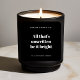 Inspirer la luminosité et les nouveaux débuts avec cette bougie de soja "All That’s Unwriting Be It Bright". Doté d'un étiquette noir minimaliste et d'une typographie blanche audacieuse, ce design moderne allie élégance et sens. Parfait comme cadeau de motivation, accent de la maison, ou un ajout réfléchi à votre routine d'autosoins, cette bougie rend chaque instant luisant avec positivité. Son design intemporel lui permet également de s'allier harmonieusement avec n'importe quel décor. Bougie de cire de soja | 13 oz | Brûlure de longue durée Design minimaliste de typographie noir et blanc Un cadeau parfait pour les vacances, les anniversaires ou l'autosoin Mots inspirants pour égayer votre espace
