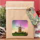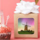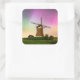 Photo sticker with a traditional windmill under a colorful sky with Northern Lights (aurora borealis) and stars at night in the countryside at Leidschendam in the Netherlands (Europe). It’s very rare for the weather phenomenon to be experienced this far south.