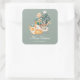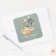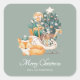 Sticker Carré Traîneaux de Noël Renard à l'aquarelle Vert de fêt