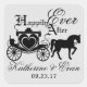 Conte fée conception de cheval et de calèche, "heureux toujours après" avec le nom du couple et la date avec le texte noir et le design sur un arrière - plan gris argent.