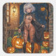 Sticker Carré Trick or Treater, courageuse fille en costume d'Ha