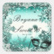 Sticker Carré Turquoise Aqua Green Winter Masquerade & Snowflake