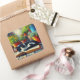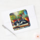 autocollant carré avec tableau de jardin d'un chat tuxedo dormant sur un livre. Ce design charmant ajoute une touche de fantaisie et de tranquillité à vos effets personnels, parfait pour les amoureux de les chats comme pour les amateurs de livres.