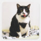 Sticker Carré Tuxedo Chat Sticking Out Sa langue