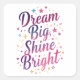 Laissez vos ambitions scintiller avec cette citation "Rêver grand, brillant". Écrite dans un magnifique mélange de script et de polices modernes et ornée d'étoiles colorées et brillantes, cette conception est un rappel éblouissant pour poursuivre vos rêves et laisser éclater votre lumière intérieure. Il est parfait pour tous ceux qui ont besoin d’un peu de motivation et de magie.