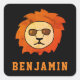 Un autocollant personnalisable cool avec une tête de lion cool avec lunettes de soleil. Modifiez le nom. L'arrière - plan est noir. Super pour un garçon.