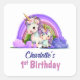 Nom personnalisé unicorne violet 1er anniversaire autocollants pour les enveloppes d'invitation et les sacs de faveur.