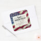 L'autocollant personnalisé mariage du drapeau américain Patriotic USA Flag représente le drapeau américain rouge, blanc et bleu Stars and Stripes. Il présente la Bible Chrétienne Verse de 1 Corinthiens 13:8, "L'amour n'échoue jamais." Customisez avec le nom et la date du couple.