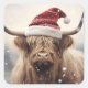 Sticker Carré Vache dans le chapeau du Père Noël pour les fêtes