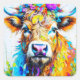 Sticker Carré Vache Florale Highland