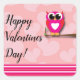 Sticker Carré Valentines Owl & Hearts Rose Rouge Rouge moderne F