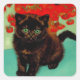 Sticker Carré Van Gogh Chat noir Fleurs rouges