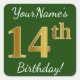 Sticker Carré Vert, Faux Gold 14e anniversaire + Nom personnalis