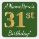 Sticker Carré Vert, Faux Gold 31e anniversaire + Nom personnalis