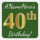 Sticker Carré Vert, Faux Gold 40e anniversaire + Nom personnalis