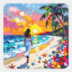 Sticker Carré Vibrant Sunset Abstract Beach Scene