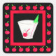 Sticker Carré Vieux style rétro Boire Cerises rouges sur Noir