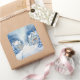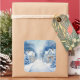 Un bel autocollant de Noël à ajouter à vos cartes de Noël ou cadeaux d'un village bleu vintage scène d'arbres, de neige et une route