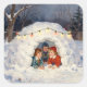 Sticker Carré Vintage Children in Snow Fort
