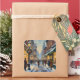 Sticker Carré Vintage Christmas Snowy City Street Scene