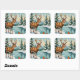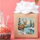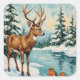 Sticker Carré Vintage Deer and Robins Christmas Scene