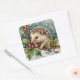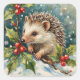 Sticker Carré Vintage Hedgehog Among Holly Christmas
