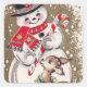 Sticker Carré Vintage Snowman With Baby Deer
