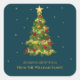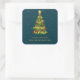 Partagez la joie des fêtes avec cet élégant autocollant carré représentant un sapin de Noël orné d'un flocon de neige doré sur fond sarcelle. Préréglé avec « Vœux de la saison » et un espace pour le nom de votre famille, il est parfait pour sceller les cartes de vacances, ajouter une touche aux cadeaux ou personnaliser votre papeterie saisonnière. Un choix élégant pour les amis, la famille et les rassemblements festifs.
