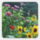 Sticker Carré Vue jardin, marguerites, cosmos, tournesols, maman